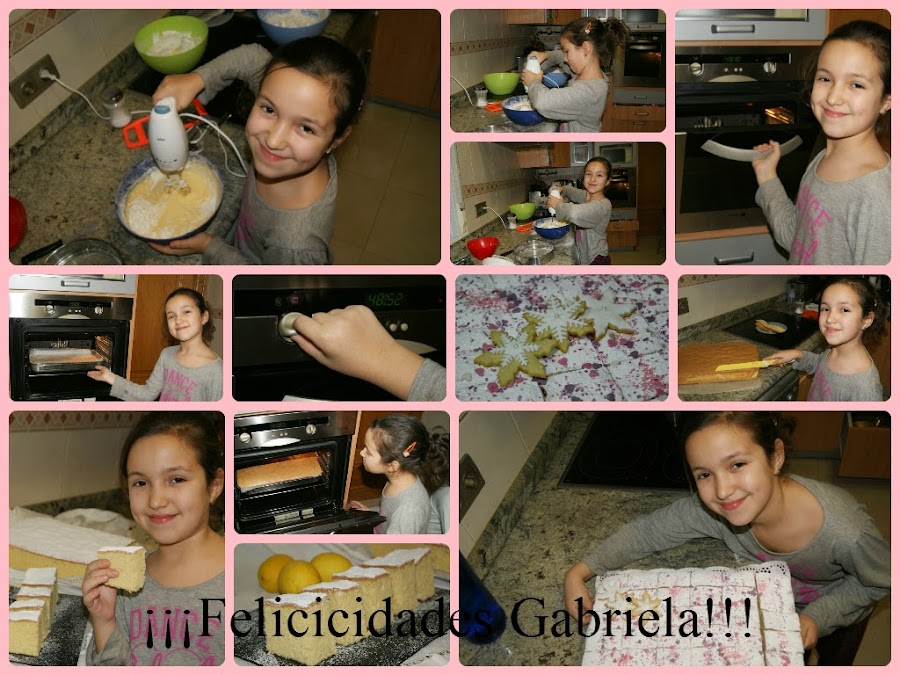 ¿Cómo lo hacemos? Pues en esta ocasión el tamaño sí importa!!! Hay que hacer un bizcocho a lo bestia, con grandes cantidades de todo y poder meterlo en el horno de casa. El que os presento hoy, es un bizcocho que pesa 1,800 Kg. Lo he cortado en pedacitos para que no anden buscando un cuchillo por el colegio y salen 36 raciones de 50 g cada una. Seguro que les sobra, pero eso no es poblema porque está tan rico y jugoso, que habrá voluntarios para repetir y además algún que otro profesor se apuntará a la merendola. Así que manos a la obra y hagamos un gran bizcocho para que nuestros peques triunfen el día de su cumpleaños. Además, también pueden ayudar a prepararlo y el triunfo es doble!