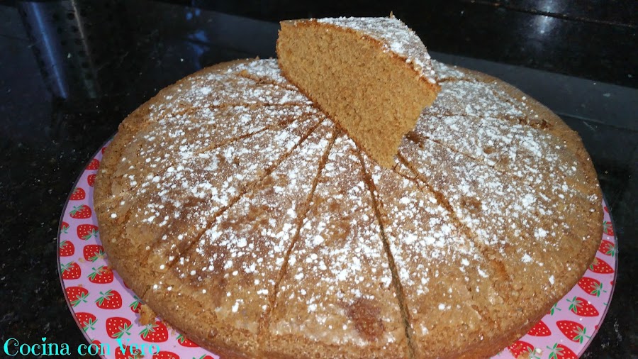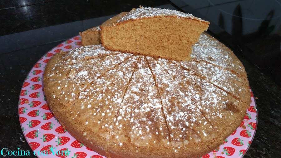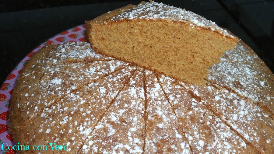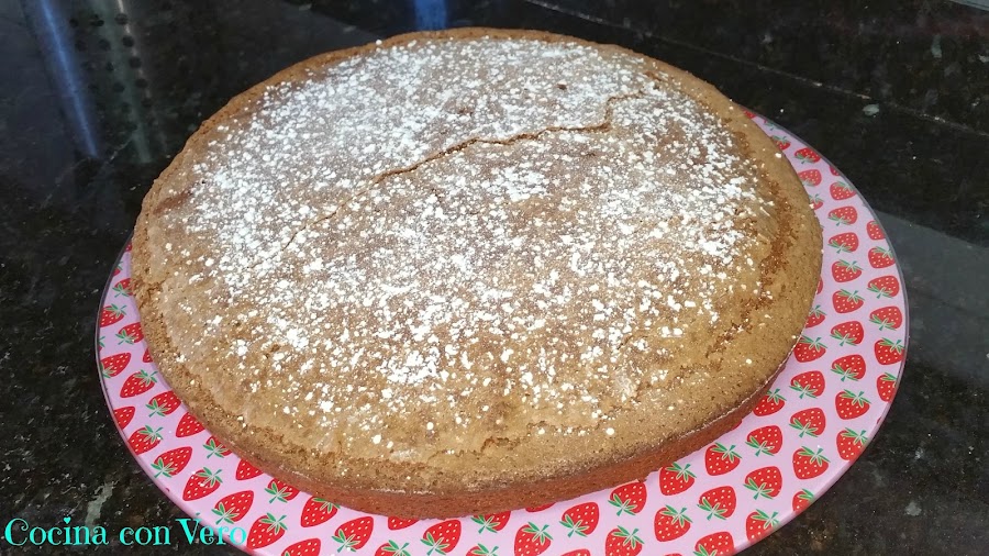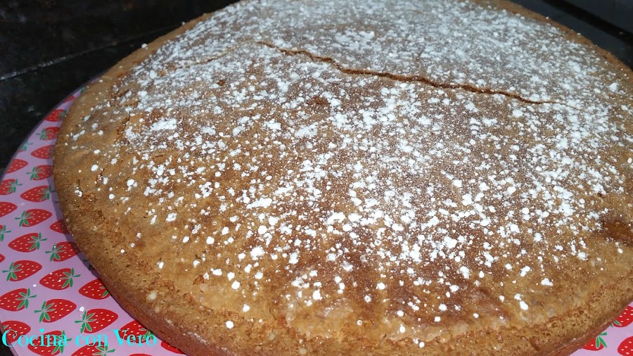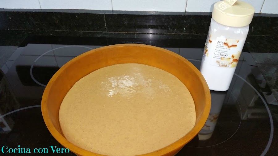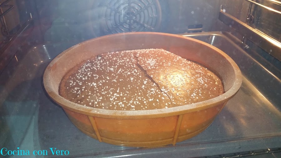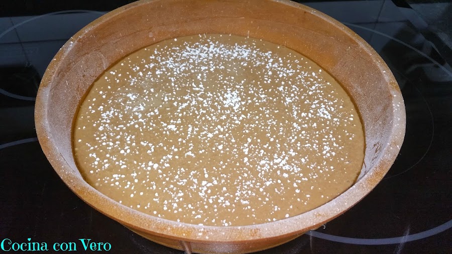 3/ En un molde previamente untado con aceite por todos los lados vamos a ir vertiendo la mezcla. Espolvoreamos por encima con azúcar glasé.
