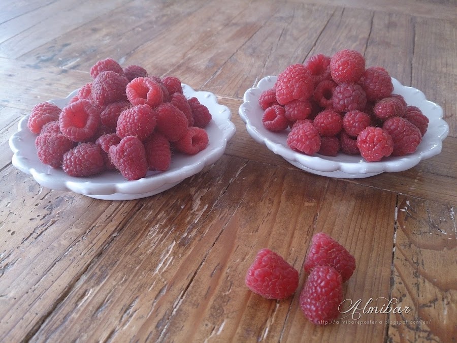 ...en esta ocasión he utilizado frambuesas en almíbar...
