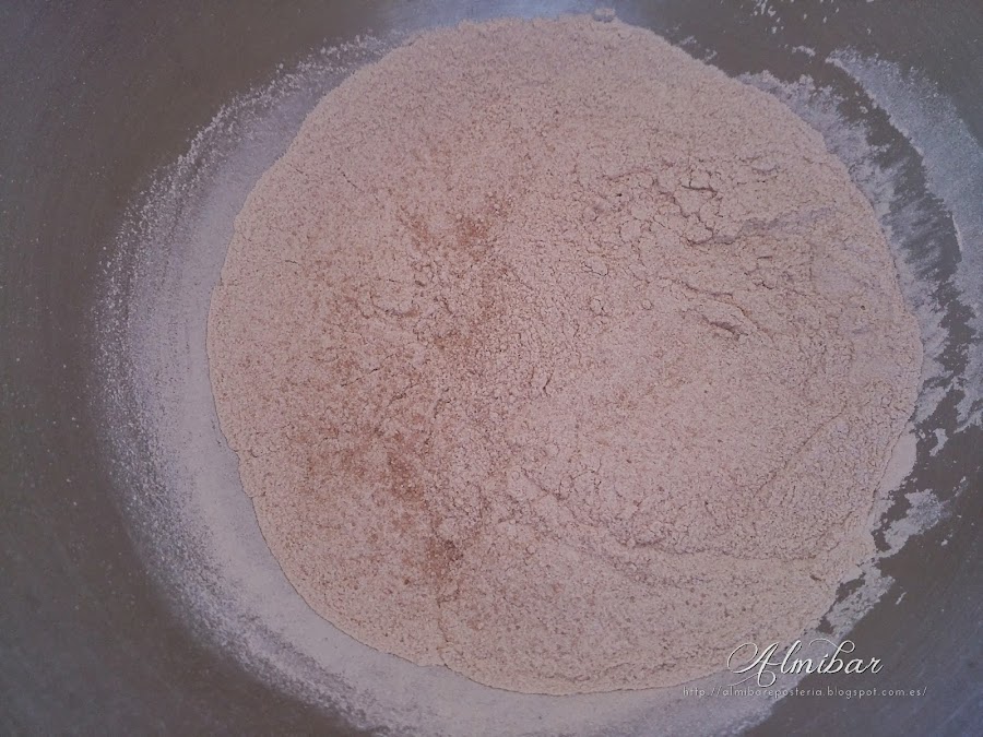 ...en un bol cerámico mezclas la harina y la levadura...
