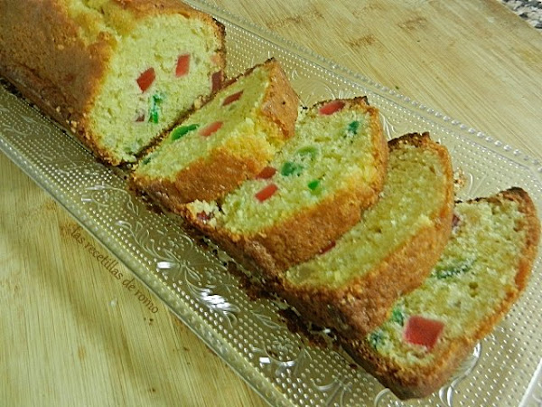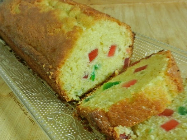 El bizcocho de frutas confitadas es una receta de aprovechamiento en mi caso porque si no nadie se come las frutillas que vienen en la caja de Navidad que le dan a mi hijo Pablo y, oye, a este dulce nadie le pone pegas