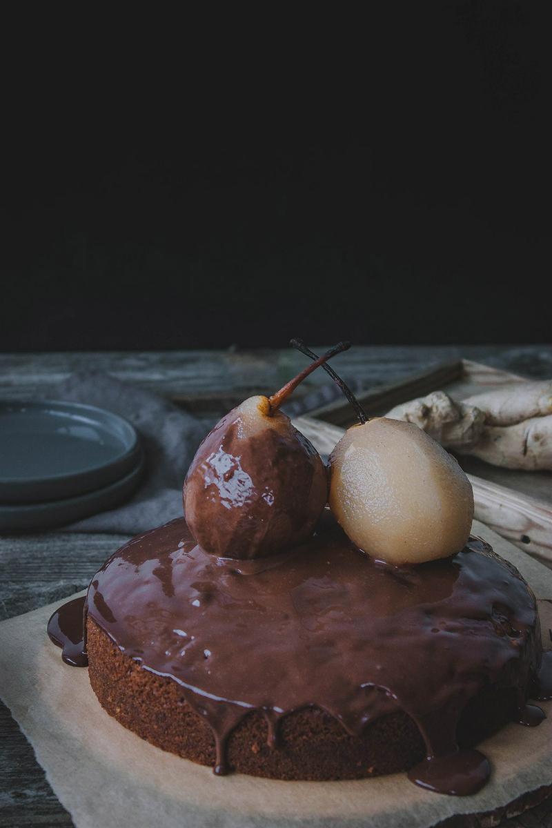 Como veis he utilizado las peras en almibar que hice hace un par de semanas para decorar el bizcocho de jengibre y chocolate, y es que las tenía en el frigorífico todavía con su jugo y he pensado que un poco de chocolate por encima quedaría estupendo. Y así ha sido, ya que el bizcocho ha desaparecido en cuanto he acabado la sesión de fotos.