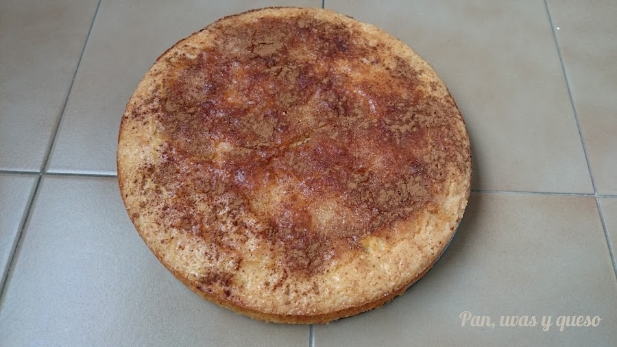 Cubrimos el molde con papel de horno y echamos la mezcla. Espolvoreamos canela por encima de la masa.