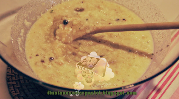Se mezcla todo con una cuchara de madera y se mete en el horno a 180º C durante una hora o hasta que veamos que pinchandolo sale limpio el cuchillo. Se dura mucho así que tranquil@s que no se quema, solo hay que comprobar...