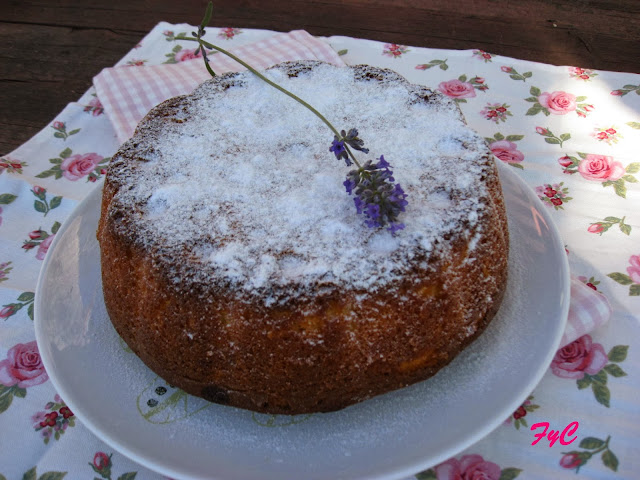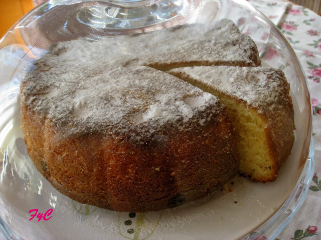 Sacamos el bizcocho y dejamos enfriar. Desmoldamos y esparcimos un poco de azúcar glass por encima.
