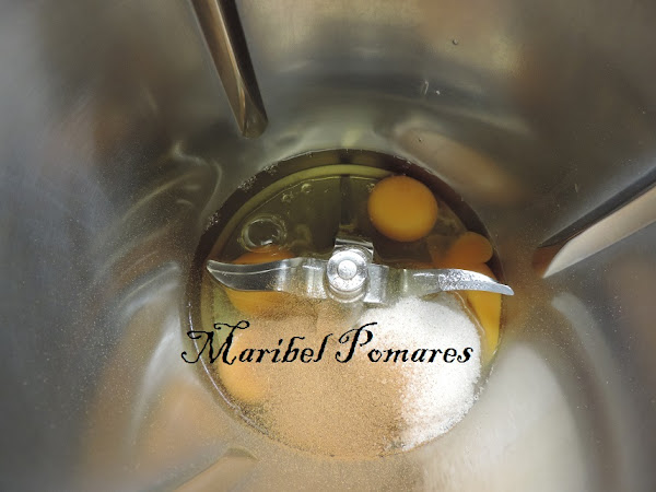 Ponemos el azúcar, huevos y canela en el vaso del thermomix.
