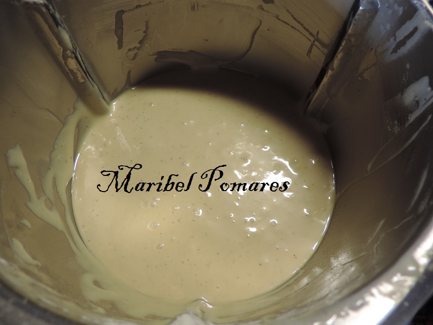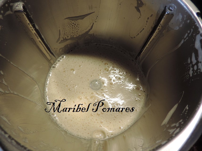 Volvemos a programar 3 minutos, sin temperatura, velocidad 3. Iremos añadiendo por el vocal la leche condensada, el yogur, aceite de oliva y esencia de vainilla.