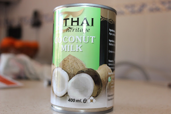 Como habéis visto, además de otros ingredientes he utilizado una lata de leche de coco Thai heritage que venía en mi caja de QuéBox de este mes.
