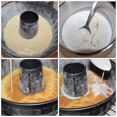 Si queréis que se humedezca por todos lados, ponemos, una vez desmoldado el bizcocho un poco de almíbar de leche de coco en el fondo del molde, colocamos el bizcocho encima y lo remojamos por encima, de esta manera se humedecerá por todos lados.