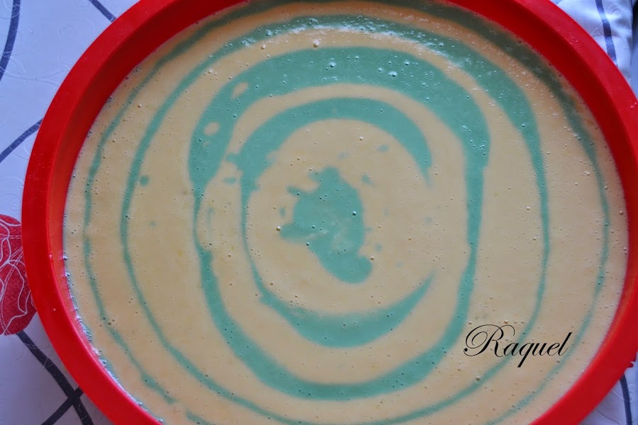 El otro dia vinieron unos amigos a comer a casa y les he preparado este bizcocho de lima y limón para acompañar el café, tiene un colorido precioso, como muchos ya sabéis que el verde es mi color preferido, supongo que ya lo habíais intuido, por lo tanto veo este bizcocho precioso, le puse un poco de colorante azul para que aparezca el color de la lima y el amarillo del huevo es el natural de los huevos criados en casa, inconfundible.