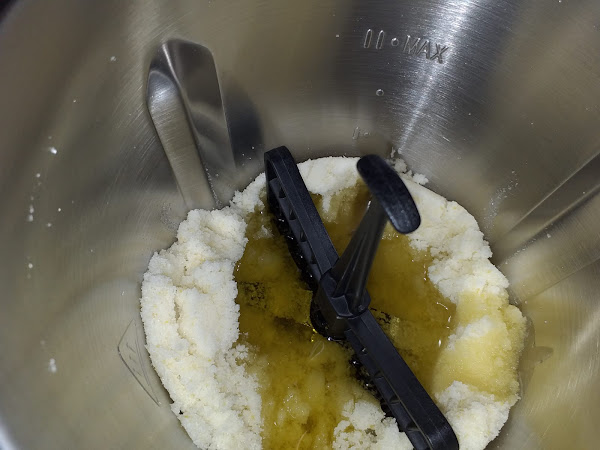 Colocamos la mariposa sobre las cuchillas y añadimos el aceite, los huevos, el zumo del limón, el yogurt, la levadura, la harina y la leche y lo mezclamos todo durante 1 minuto a velocidad 4.