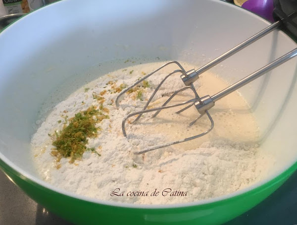Añadimos 2/3 de los pistachos, las ralladuras de limón y lima y el zumo de limón. Mezclamos todo bien.