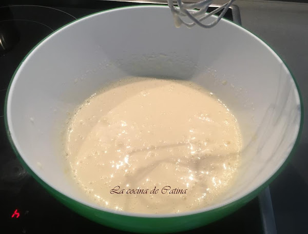 Mezclamos la mantequilla y el azúcar hasta que se forme una crema ligera y esponjosa. Añadimos los huevos de uno en uno.