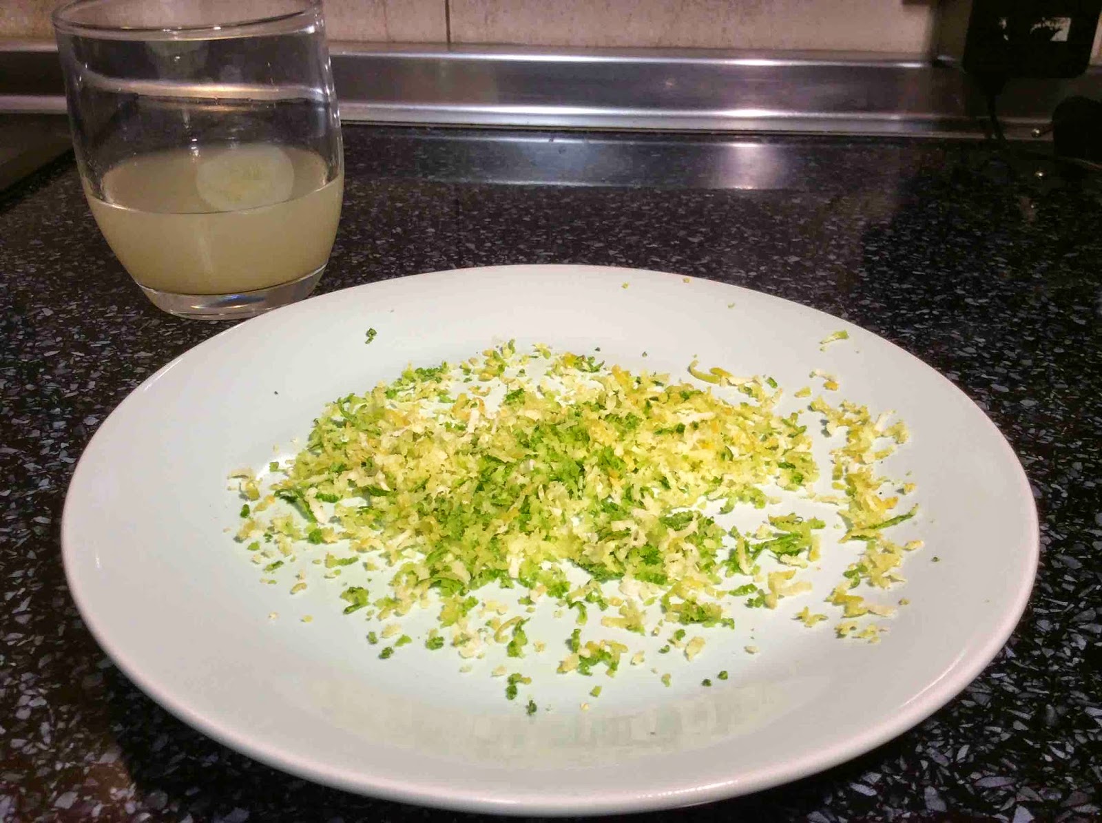 1: Lavamos los limones, rallamos la piel y exprimimos el jugo.