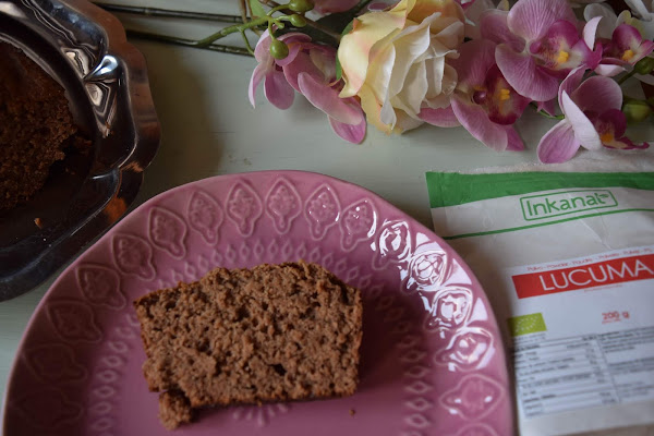 La pulpa se usa en muchas preparaciones dulces como tarta, merengues o helados. La pulpa también puede secarse o congelarse y al deshidratarla y pulverizarla se obtiene la harina de lúcuma. Esta fruta al ser dulce se puede usar como edulcorante natural, como yo no la conocía he optado por echar a la receta un poco de panela y aún así no ha quedado un bizcocho muy dulce. Podéis jugar con la cantidad de lúcuma que echáis y así no lo tendríais que poner azúcar.