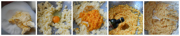 Colocar en un bol el azúcar y la mantequilla a punto pomada. Batir hasta obtener una crema. Añadir el huevo incorporando bien. Agregar la mandarina triturada y el brandy, mezclando bien. Por último incorporar la harina tamizada con lalevadura y la sal.