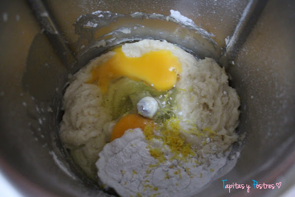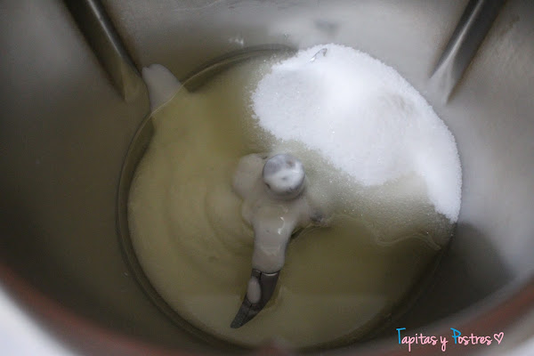 Incorporamos los huevos, el aceite y la levadura y acabamos de mezclar otros 20 segundos a velocidad 4.