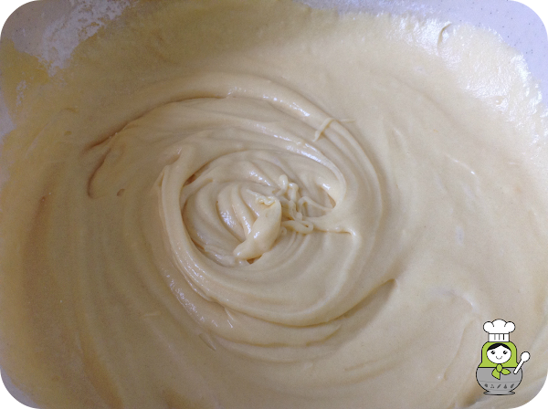 Por último, echamos en el bol la harina tamizada con la levadura. Revolvemos bien hasta obtener una masa sin grumos.