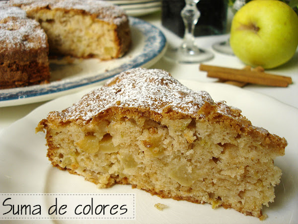 Este bizcocho de manzana con cáscara es genial porque se mantiene húmedo y jugoso mucho tiempo, tiene un toque de canela espectacular, es rapidísimo de preparar y resulta muy original al aprovechar incluso la piel de las manzanas. La receta la he obtenido de la web de Pamela Brandao, podéis verla aquí. Yo no soy demasiado buena para los idiomas, pero es bastante fácil de entender… y con un poquito de ayuda del diccionario ha sido pan comido.
