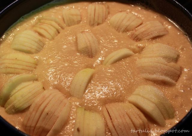 Busque varias recetas por la red ya que no me apetecía la clásica tarta de manzana y finalmente me decanté por esta del blog de Isabel, Aliter Dulcia.