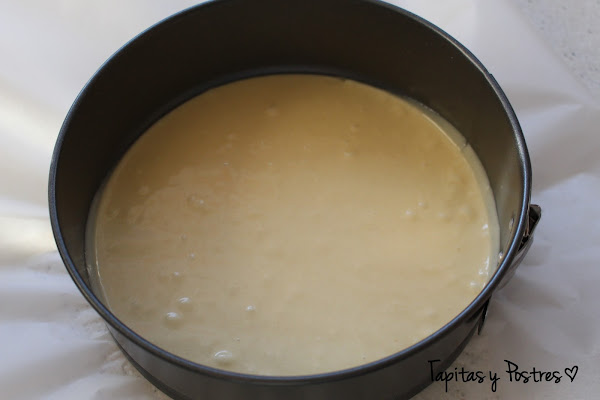 Ahora vertemos una parte de la masa en un molde engrasado.