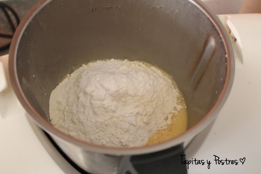 La harina, el aceite y la levadura. Lo batimos todo