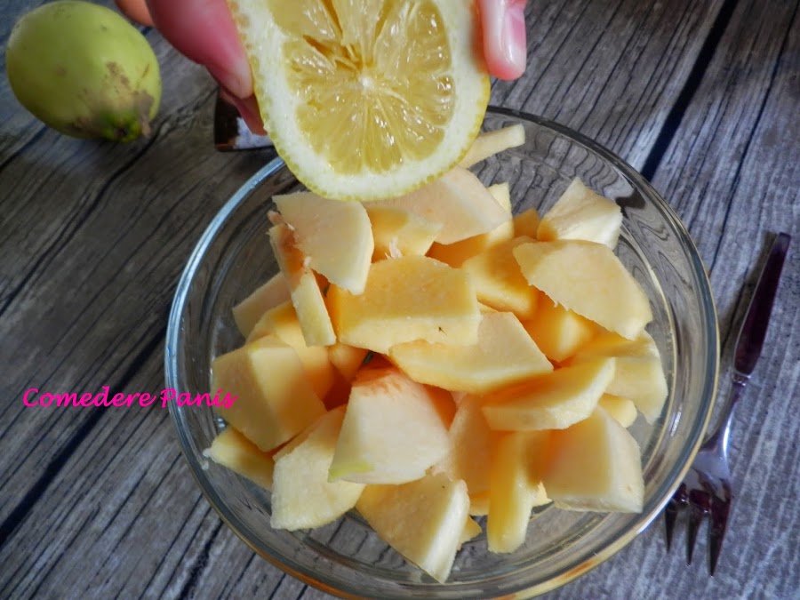 Para empezar lavar, pelar y cortar en trozos los membrillos, añadirles unas gotas de zumo de limón y colocarlos en un cazo al fuego hasta que estén bien guisados. Si los teníais guisados en el congelador pues esperar a que se descongelen.
