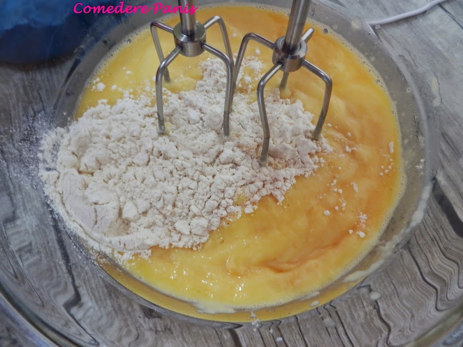 Tamizar el harina junto con la levadura y agregarla poco a poco mientras batimos.