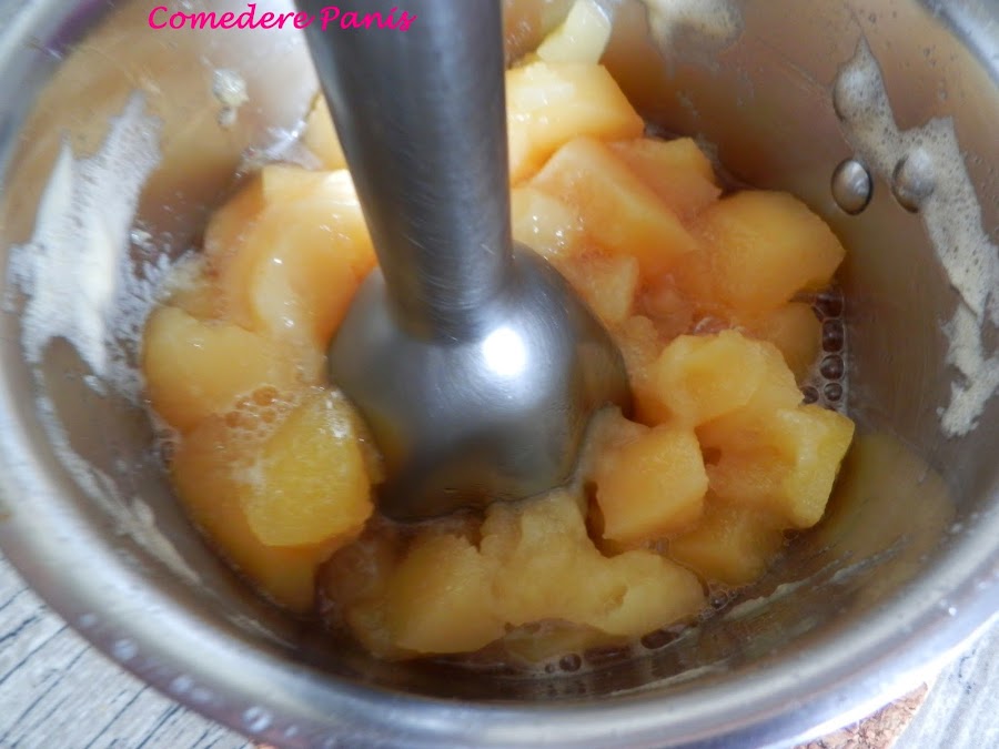 Cuando estén guisados triturar 300 gr. de membrillos ya guisados. Dejar que se enfríe.