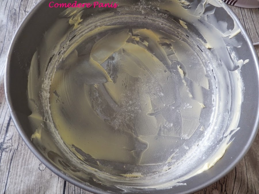 En lo que el membrillo se enfría podemos ir untando el molde con mantequilla o margarina y espolvorear sobre la mantequilla un poco de harina, así se creará una capa protectora y evitará que el bizcocho se pegue al molde.