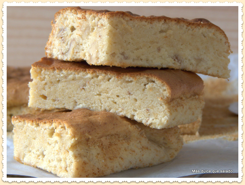 Este bizcocho es denso pero jugoso. Si os gustan los bizcochos más esponjosos, añadirle un sobre entero de levadura en lugar de las dos cucharaditas que indica la receta.