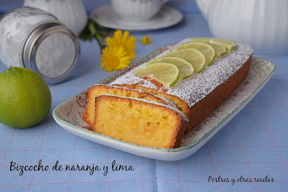 Delicioso bizcocho de naranja y lima, ideal para acompañar el desayuno o la merienda.