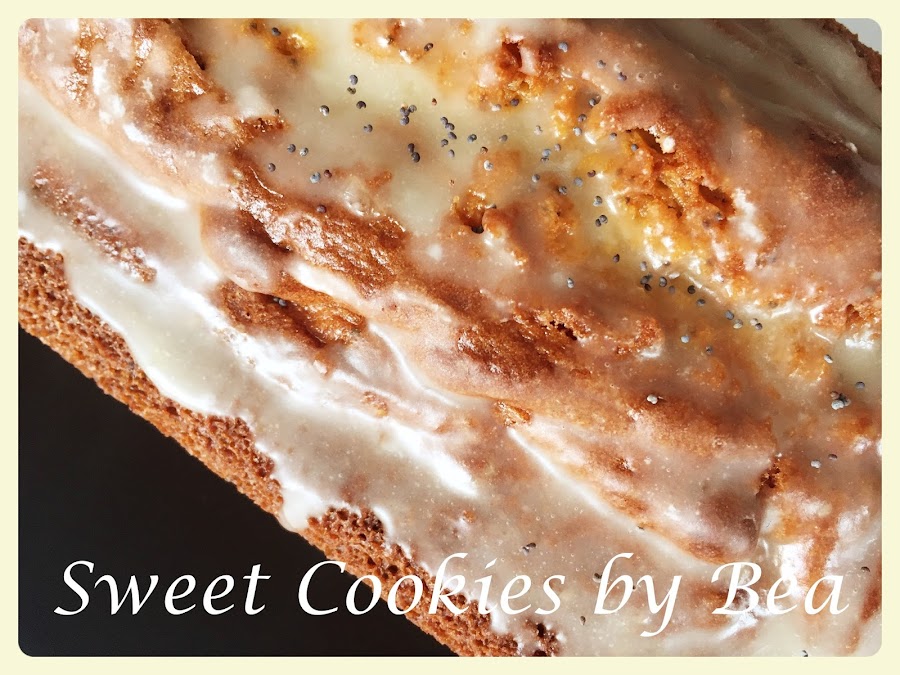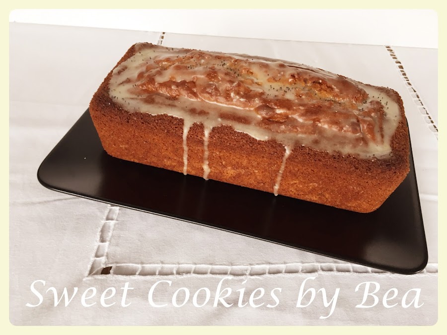 Se ve rico y esponjoso. Yo hice el glaseado con el azúcar y el zumo y después de puesto sobre el bizcocho le puse las semillas de amapola.