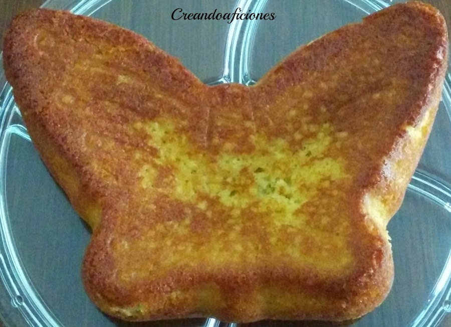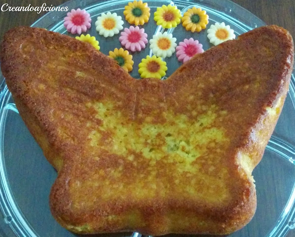 Precalentamos el horno a 180ºC y con aceite engrasamos bien el molde, en este caso con forma de mariposa.