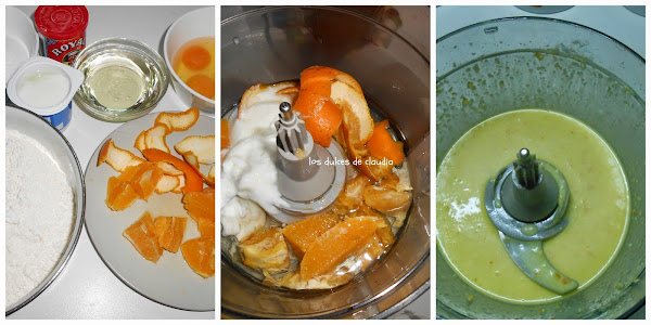 Pelar la naranja y quitar la parte blanca y las pepas. Triturar junto con el aceite y yogur.