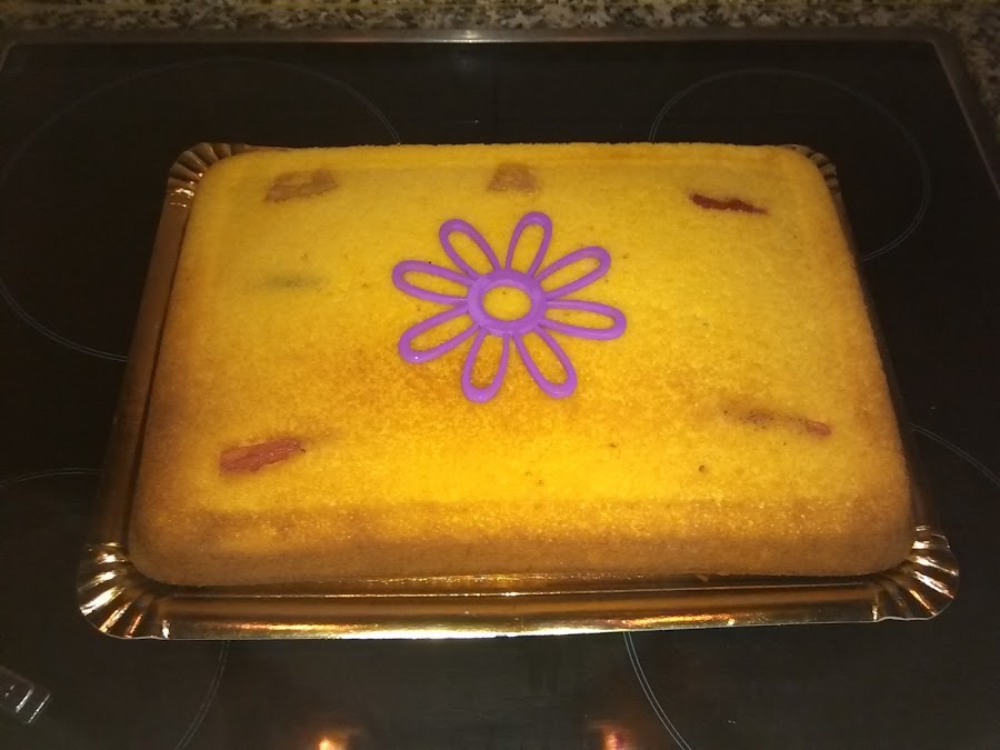 Una vez lo tenemos en el molde , si lo deseamos pondremos los trocitos de frutas excarchadas,