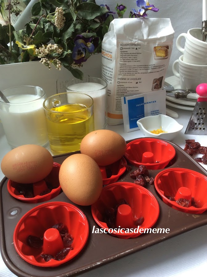 En esta foto veis que hay leche, es de otra receta, para este bizcocho, la he sustituido por el zumo de la naranja...