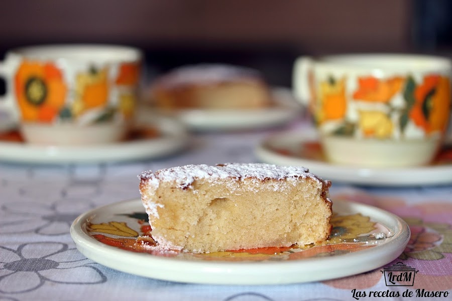 La porción que veis en la foto es la parte más presentable que pude salvar para inmortalizar este delicioso dulce. Queda un bizcocho, alto, muy esponjoso y con un sabor a nata (crema de leche) muy rico.