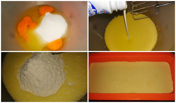 Engrasamos un molde con mantequilla y harina (yo en mi caso he empleado uno de silicona, por lo que sólo le he extendido con un pincel un poco de aceite de girasol), y vertemos la mezcla.