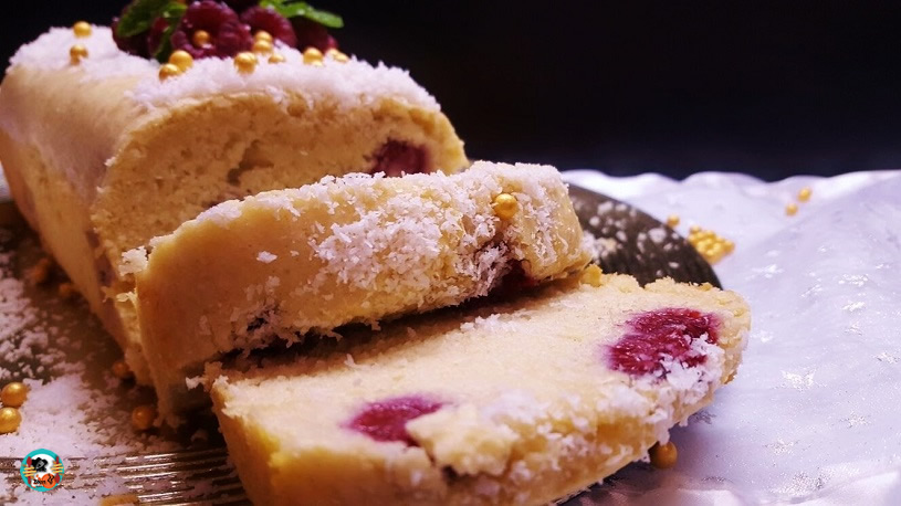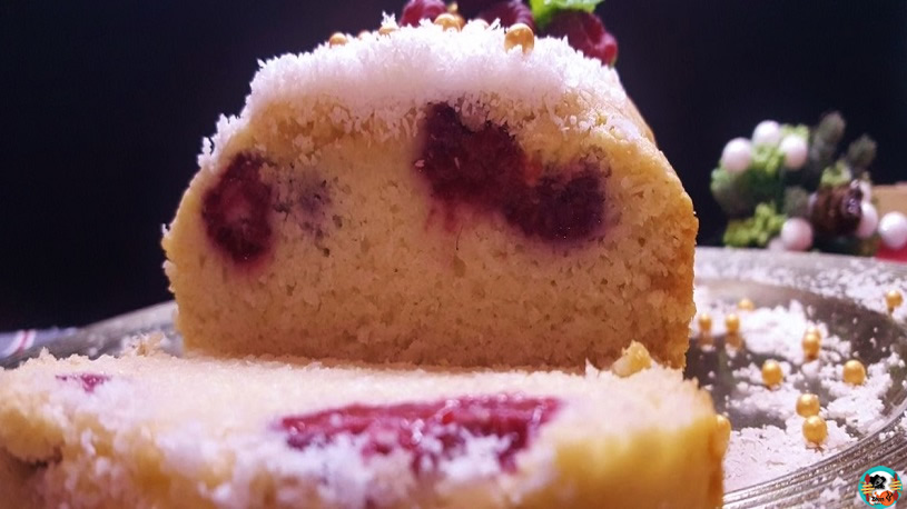 El bizcocho he preferido hacerlo blanco, como las capas frías de la nieve que cae en invierno. Además, combinan muy bien con la fruta roja y las bolas doradas de azúcar. Si te gusta más dorado, simplemente tienes que cocinarlo sin seguir los consejos que doy al final de la receta.