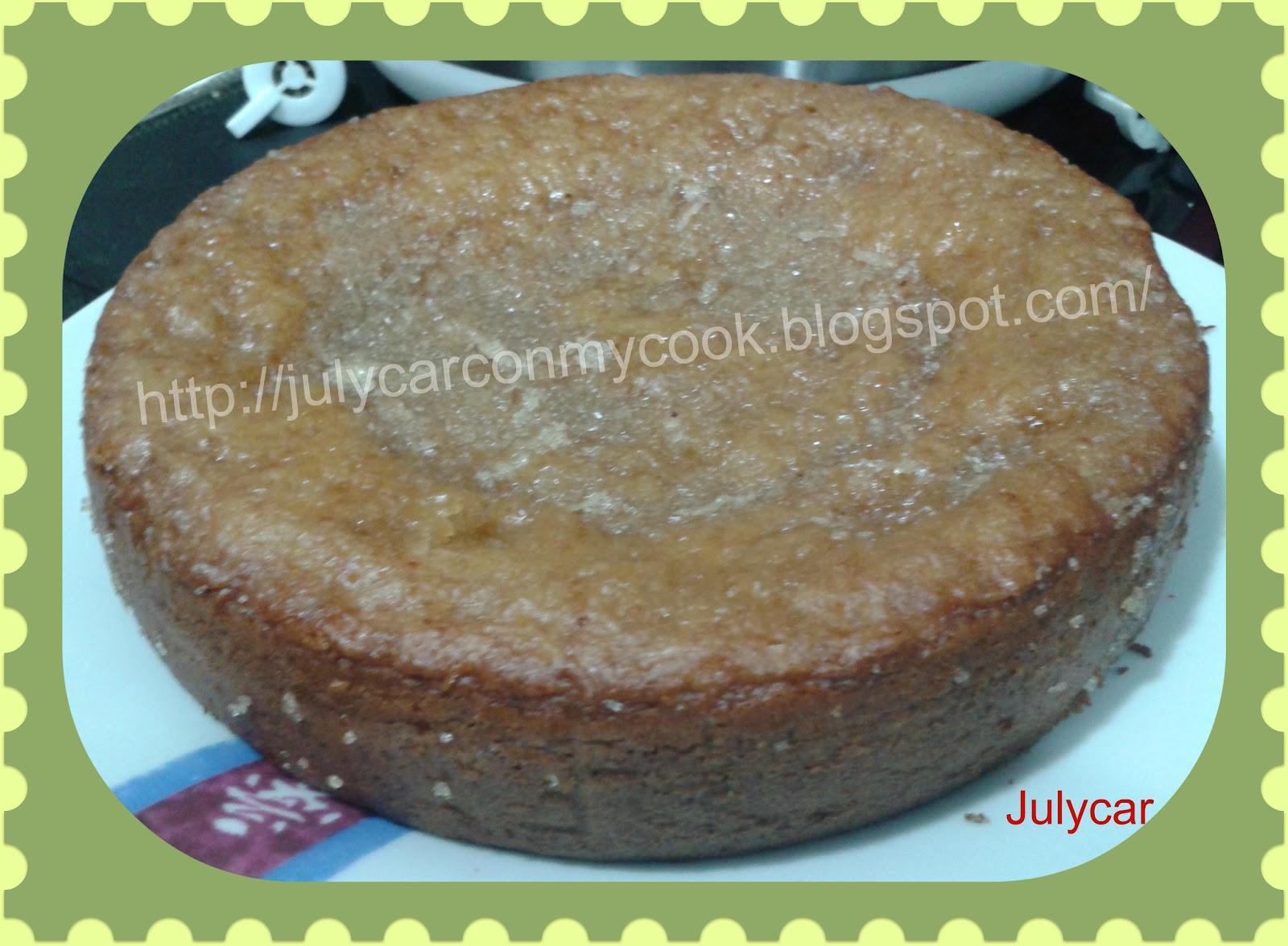 Poner todos los ingredientes menos la cobertura, en el vaso de la batidora y mezclar bien, en la cubeta de la Cocimix DeLuxe poner la base de silicona (si no la teneis no pasa nada) meter dentro la masa del bizcocho, tapar con válvula abierta ó quitada, programar menú horno, 140º, 40 minutos, dejar enfriar dentro de la cubeta antes de desmoldear, diluir la mantequilla en el microondas y mezclar con azúcar moreno, añadirselo por encima al bizcocho cuando aun este caliente