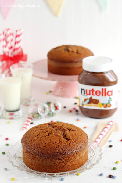 Con este bizcocho hice un espectacular Drip Cake de Nutella de ahí que decidiera hornear la masa en dos moldes más bajitos, de esa forma es más sencillo laminar para posteriormente rellenar.