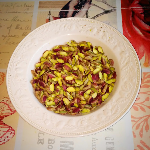Batir la mantequilla en pomada con el azúcar moreno. Añadir los huevos, la harina tamizada, la leche y la ralladura de las naranjas. Por último añadir los pistachos molidos.