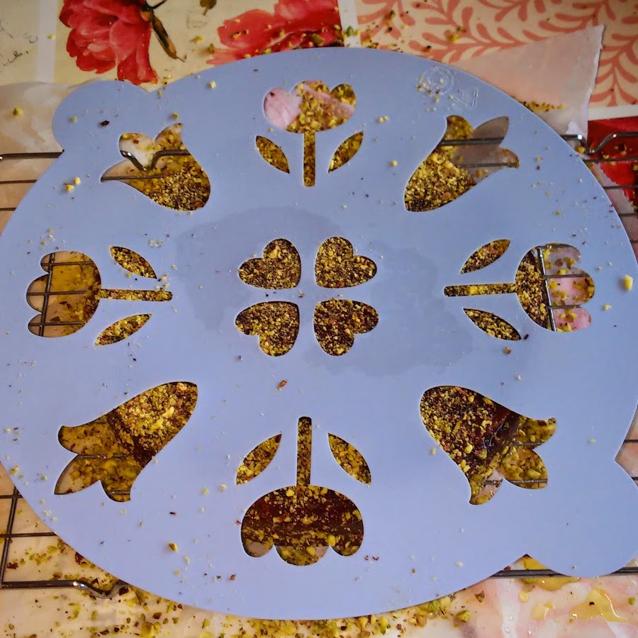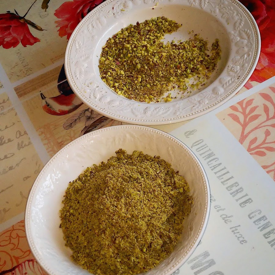 Con los 50 gr de pistachos también molidos pero grosamente esta vez, decoramos el bizcocho.