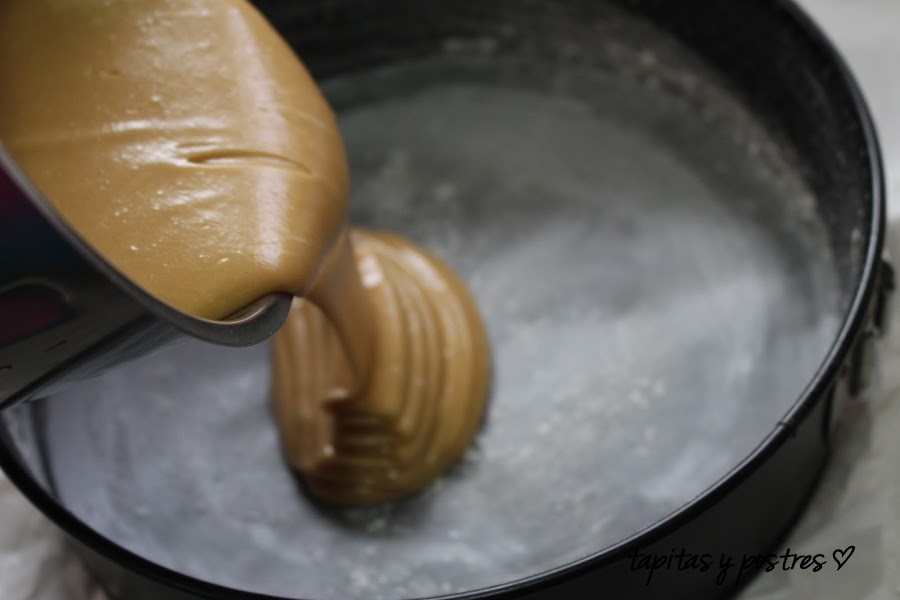 Y vertemos la masa en un molde desmoldable (si es posible) y engrasado. Al horno.