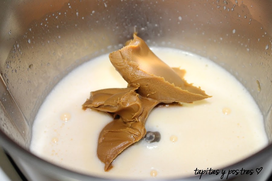 Agregamos el aceite y volvemos a batir 20 segundos a velocidad 3. Incorporamos la pasta de speculoos y mezclamos 20 segundos a velocidad 4.
