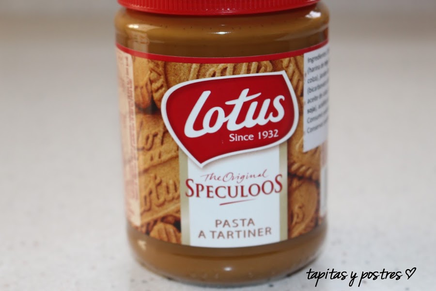 Pues de casualidad, entré hace unos días en un supermercado DIA y encontré pasta de speculoos. Es una pasta densa, muy dulce, para comer a cucharadas... pero eso no me conviene, que me conozco y hasta que no acabo el tarro no paro. Así que lo mejor es preparar algo con ella para que más gente lo disfrute.