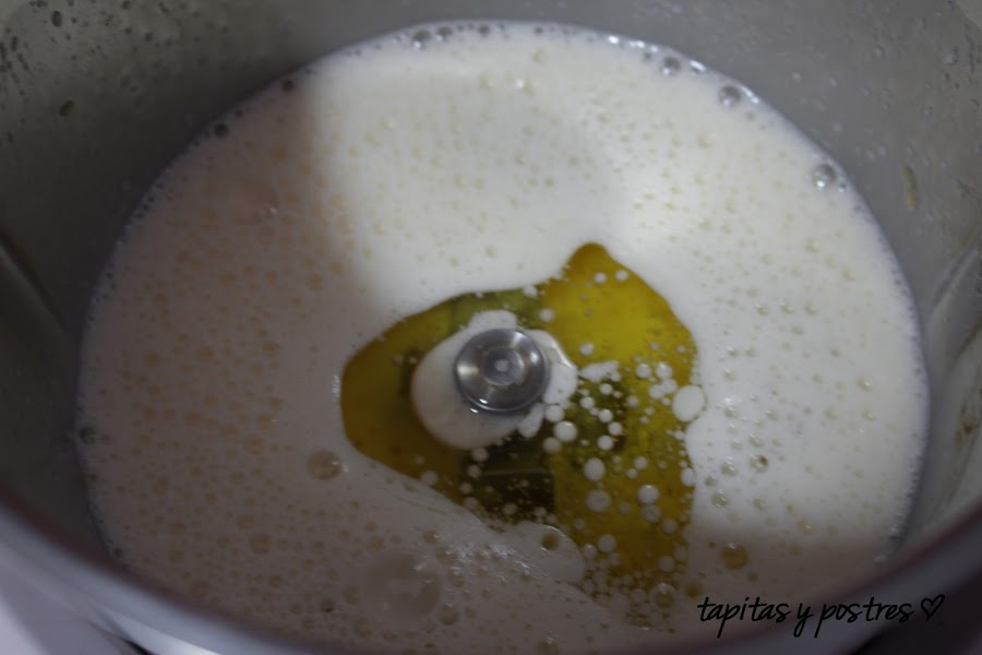 Se añade el aceite. En esta ocasión he usado oliva suave, no me quedaba de girasol.