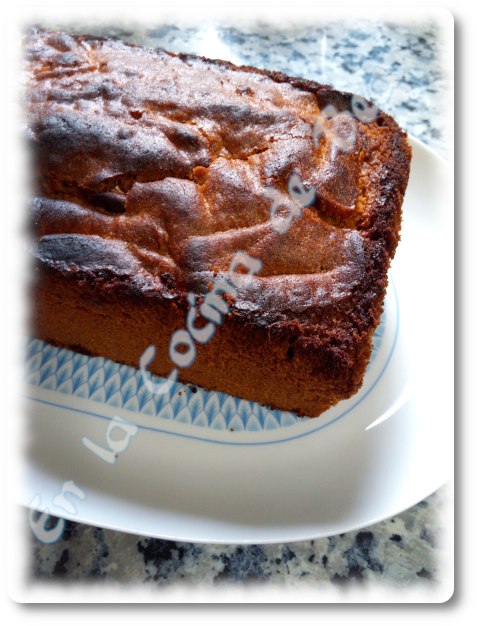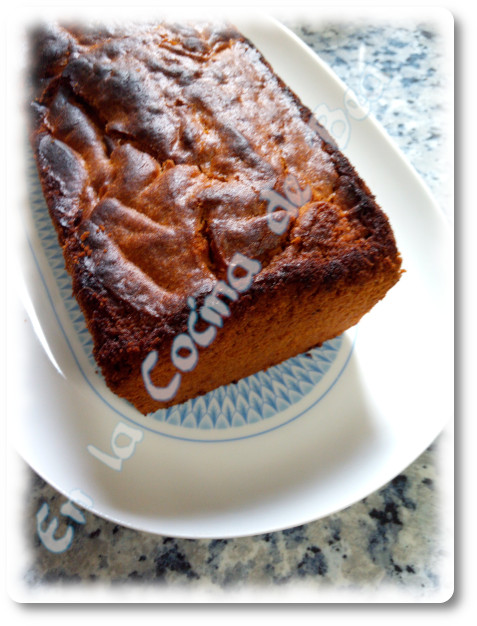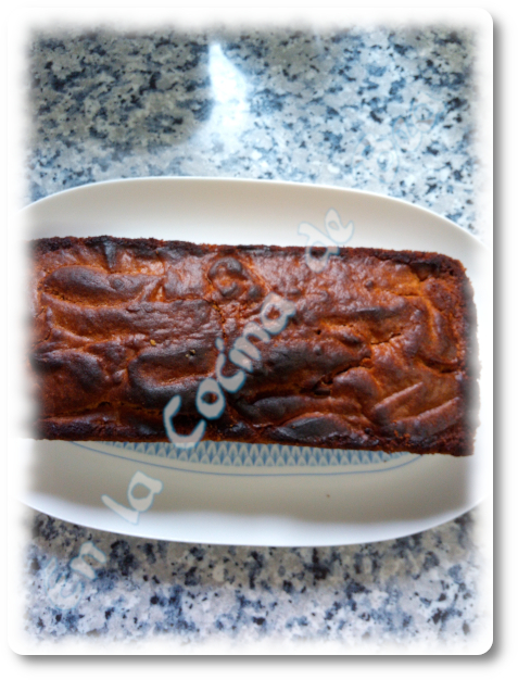 Vertemos la mezcla, damos unos golpecitos al molde para asentar la masa y horneamos unos 40 minutos o hasta que al pincharlo con un palo de brocheta o tester, salga limpio.