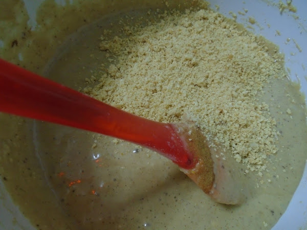 Cuando tengamos una masa homogénea añadimos el turrón duro triturado mezclamos despacito hasta que este todo bien integrado.